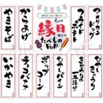 食べ物を並べるテーブルに貼ると、ぐんと祭りムードと楽しさ・おいしさが増します。